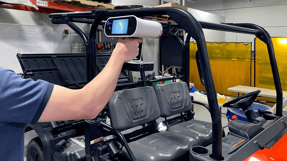 使用Artec Leo对Kubota多功能车的防倾杆进行3D扫描。图片由Curtis Cabs提供