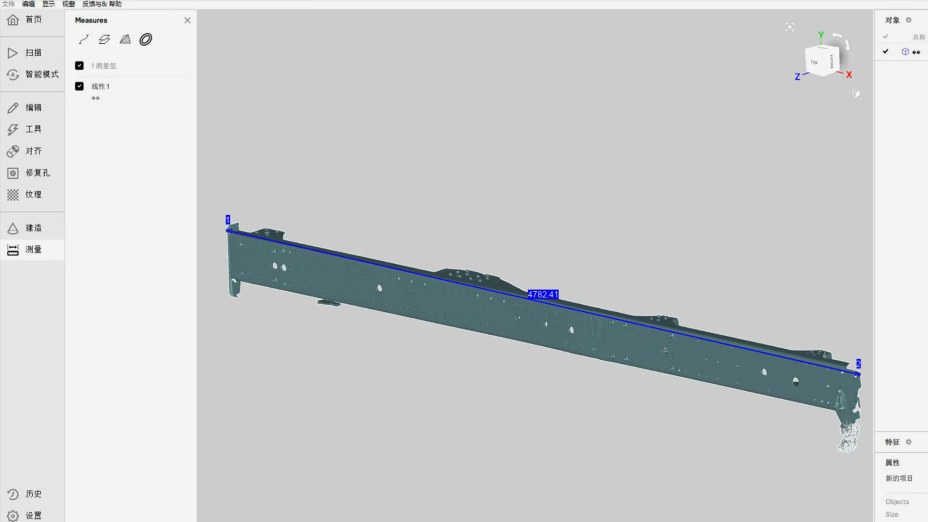 在Artec Studio中处理完毕后,工程师把大梁的数模导入到Geomagic Design X中进一步逆向建模以得到参数化模型,并在该模型基础上生成参数化二维图。