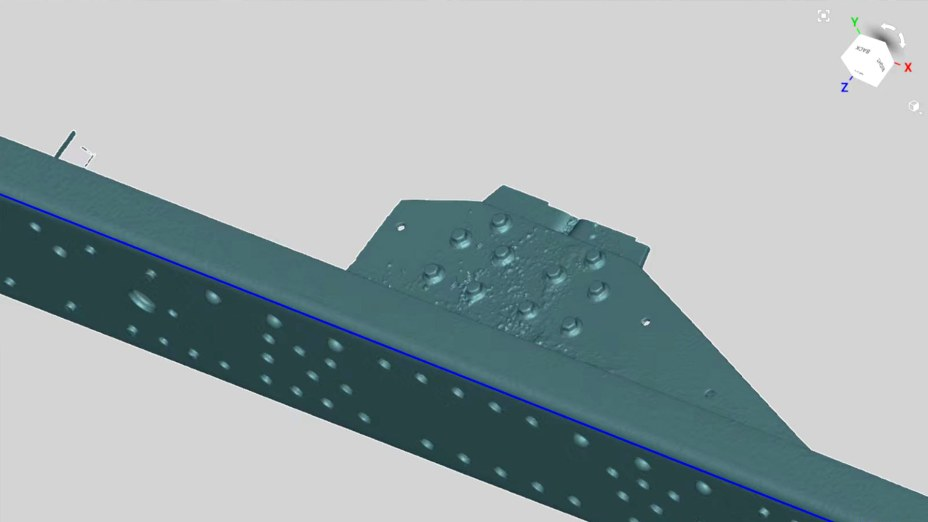 鉴于维修现场的实际条件和数据要求,福莱德科技的工程师首先推荐了Artec Leo作为首选解决方案。在维修工厂现场,工程师手持Leo,无需任何准备工作、也无需连接电脑的情况下花费了半个小时就完成了大梁的数据采集。