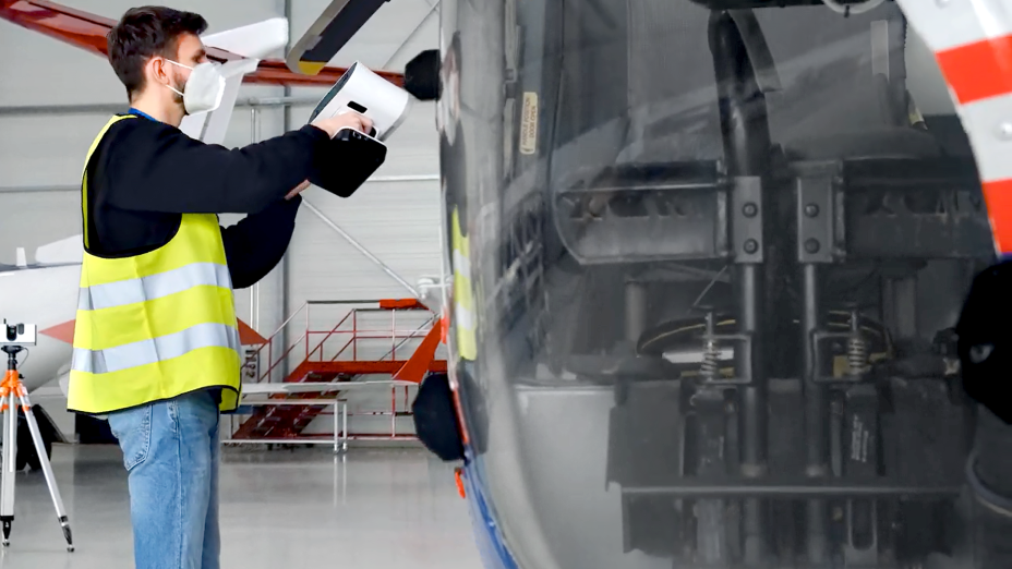 挑战:使用三脚架支撑的远距激光扫描仪和一台专业手持式三维扫描仪,完整扫描一台空中救援直升机,从起落橇到螺旋桨叶,甚至包括其中每一处表面细节。随后,将扫描结果转换成面面俱到的3D模型。