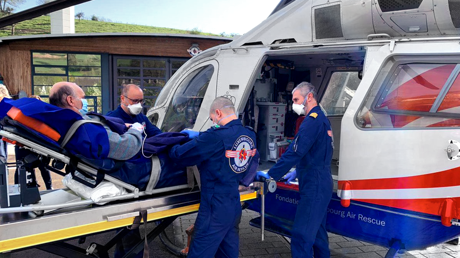 卢森堡航空救援组织飞行团队正在为一名患者做医疗运送的准备