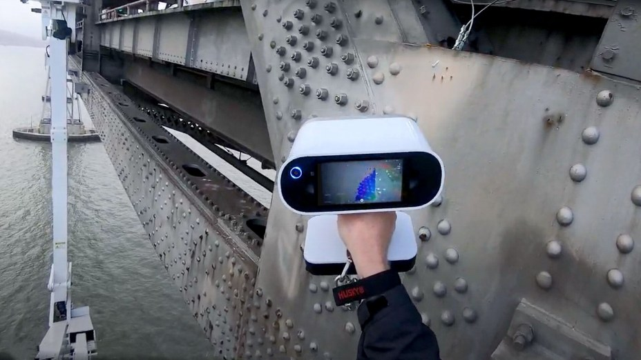 挑战:经过数十年的暴露及磨损和持续靠近世界上一些破坏性的元素、高温和海水,旧金山里士满-圣拉斐尔大桥生锈的钢板需要更换。由于没有可靠的图纸和钢板的测量数值(这座桥建于20世纪50年代),——因此需要从这些钢板中获取准确信息。只有一个问题:这些钢板是一座5车道大桥的一部分,每天大约有8万辆车辆通行,并且位于旧金山湾185英尺(56米)的高度。