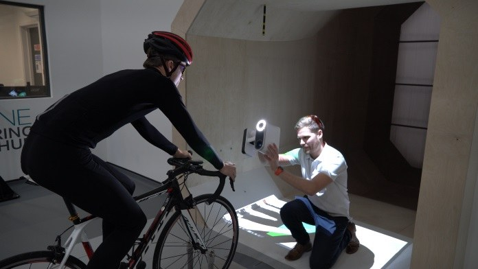 在SSEH运动性能测试风洞中3D扫描一位骑手