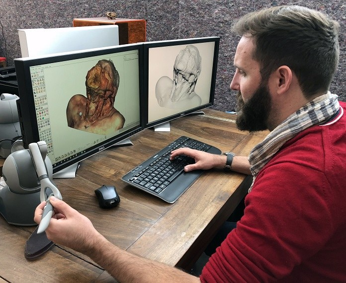 “Artec扫描仪捕获几何与纹理的能力令人惊叹,尤其对于那些半透明、或有光折射现象的高难度扫描区。通过调节扫描仪敏感度,我们能够100%捕获几何与色彩,且无需对尸体进行任何事先准备!”