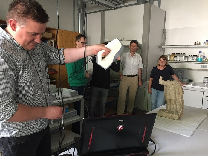 这款APP带有罗马遗址的文物重建模型和互动式3D模型。用户可以平摇、放大、旋转,还能从文本介绍中找到更多相关信息。为实现博物馆文物的3D捕获,中心结合了Artec结构光扫描仪和数字摄影测量技术。他们已升级到Artec Eva系统,这无疑提升了数据品质,且更为便携,方便使用。他们还配备了电池组,以用于没有供电电源的地方。项目期间,他们还为慕尼黑博物馆里火星与金星的精彩雕像进行了数字记录工作。将3D模型融入APP后,他们就能将文物返回至原处。奥地利合作商EduFilm正在开发增强现实组件,届时您可以在考古现场和3D模型进行实时互动。这些3D模型通过AR触发,会在特定地点加载,帮助访客了解遗址信息。这一功能将于明年推出。