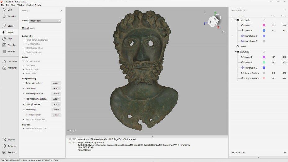 设置、扫描和处理所有对象并创建各自的3D模型所需的总时长不到一个小时。与之前所使用的摄影测量法形成了鲜明对比。