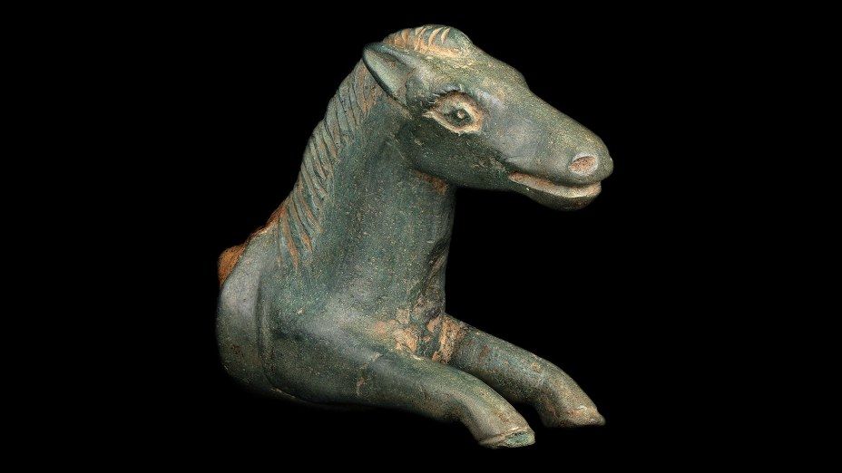 在古罗马时期,非常流行以动物造型装饰的日常用品。这个马形手柄原本是把刀柄,推测是在下葬前有意将刀折断了。