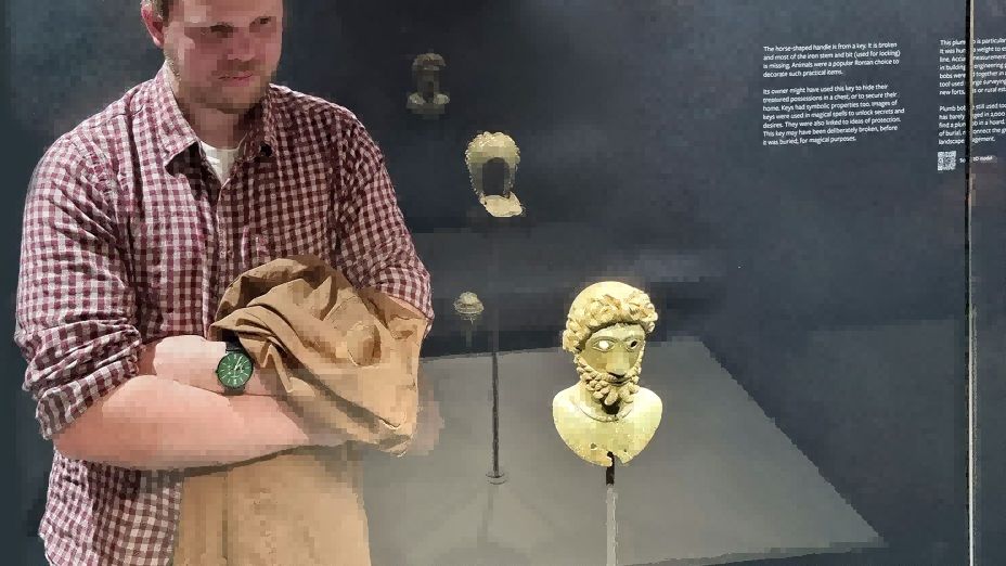 Heritage360团队的詹姆斯·奥斯本在约克郡博物馆参观赖代尔宝藏展览。图片来源:Heritage360