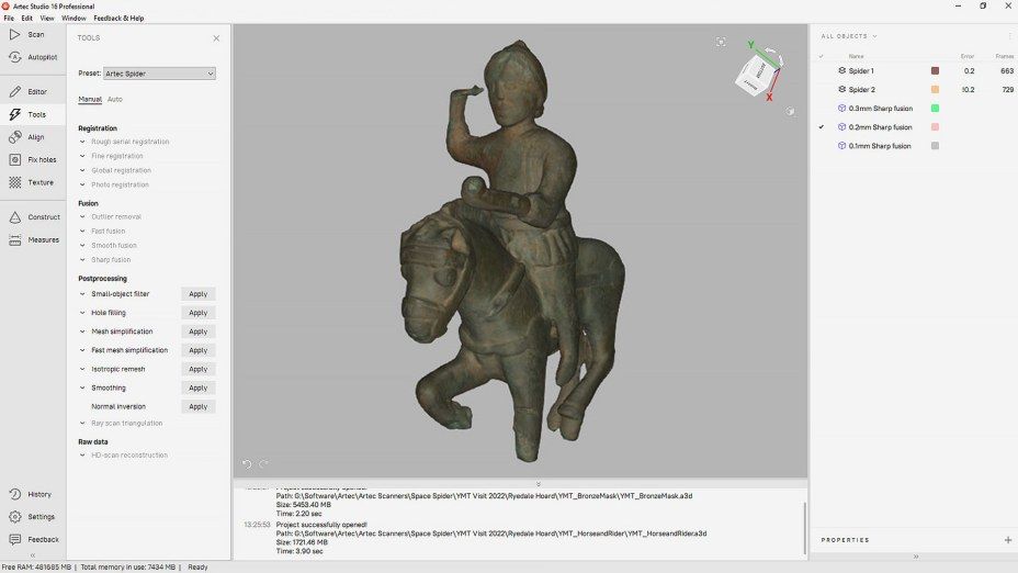 Artec Studio软件中处理使用Space Spider扫描的马背上的马尔斯雕像。图片来源:Heritage360