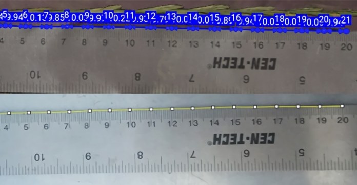 随后,Tubbs将测量值绘制成图,直观地比较两种方式的精度。从图表上看,两种方法都能准确地测量多年生黑麦草穗,且还原度高。 照片的测量误差为±1.72毫米。而Space Spider的扫描误差为±0.09毫米。两种方法的精度并无统计意义上的差异(P值为0.92),证实了设备精度很高。