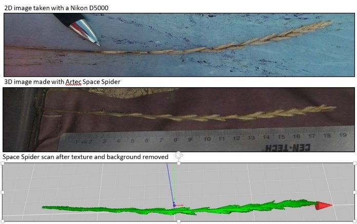 埃太科金牌经销商Digital Scan 3D的Richman Siansimbi见了Tubbs,他们一起使用Space Spider扫描了黑麦草部分样品。那天下午,Tubbs发现Space Spider的亚毫米级扫描能呈现大量细节,用于分析,而且在Siansimbi的帮助下,他们进行了实验,找到了一种可重复操作的工作流来扫描黑麦草,且过程轻松,这一方法Tubbs一直用到今天。