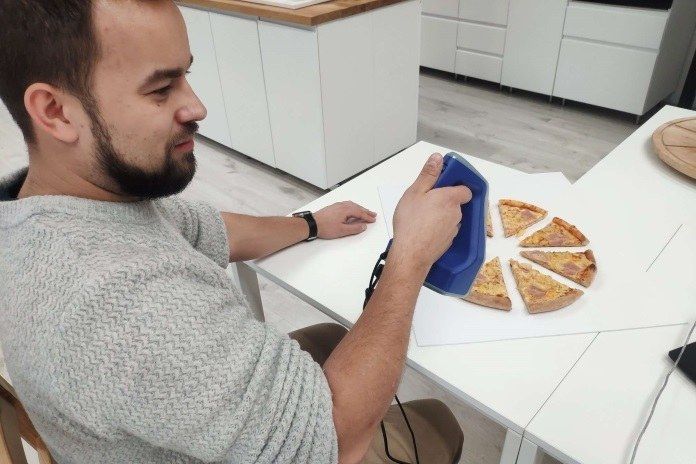 如果有张热气腾腾的披萨刚从烤箱里端出来,你想到的绝对不会是去3D扫描一下。但波兰一位3D扫描专家却是这么做的。几个小时前,他在华沙的客户NuOrder广告公司接到Da Grasso披萨的电话,这是波兰国内受欢迎的披萨品牌之一。