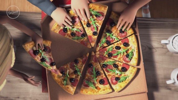 NuOrder动画团队专家使用3ds Max、Adobe Photoshop、After Effects以及Zbrush制作逼真3D模型,用于动画序列。披萨上的小元素,包括芝麻菜叶、橄榄、樱桃小番茄也是单独加上的。