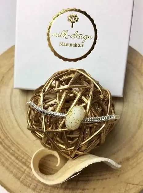 Patrick无意间发现可以用母乳或其他“天然材料”制作珠宝——用母乳做成的宝石、带有宝宝指纹或胎发的戒指、有狗狗脚印的挂坠等等,于是他有了新的创意。虽然天然材料制作的珠宝当时在美国很风靡,但在德国和欧洲却很少见。于是他们的“二胎”,珠宝设计服务milk-design诞生了。