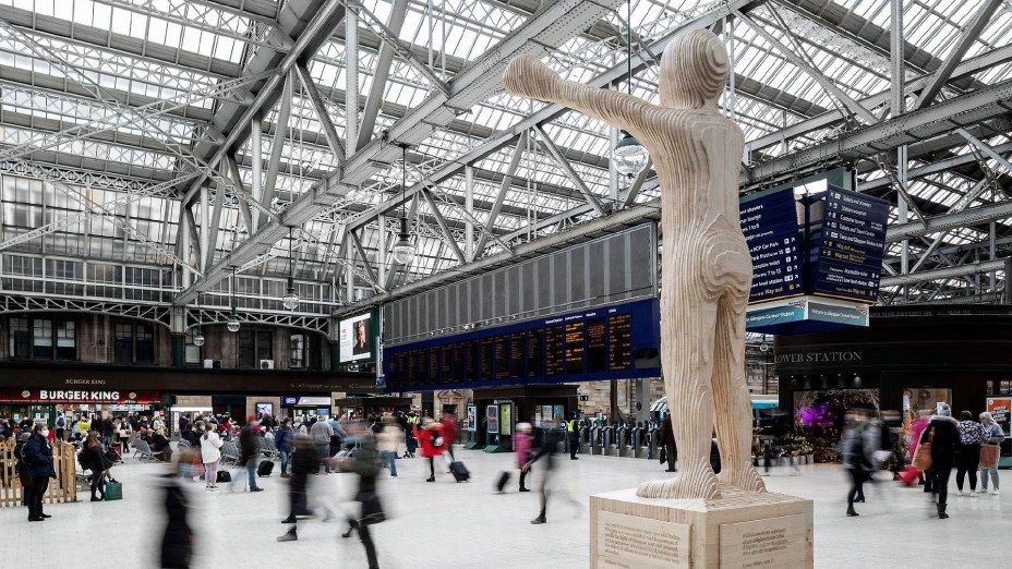 除了Cuningar Loop雕塑,Padwick还设计了另外两座雕塑:一座位于格拉斯哥中央车站(苏格兰繁忙的火车站,每年接待超过3000万游客),另一座位于思克莱德大学。作为环保的交通工具之一,以及人们无数次相遇的地方,火车站作为希望的灯塔有着特殊的意义。