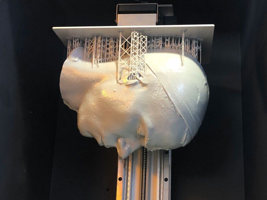 扫描所耗时间短,接下来就是打印了,这才是最耗时的步骤。Zakarian 详细介绍了操作流程:“我有几台树脂打印机,所以就把文件分成几份,同时打印。”过去帮Carrey进行活体翻模,需要花17小时。他补充道:“一般定在晚9点开始,第二天下午2点完成。我还把鼻子部分切了下来,放进模具,单独打印那一部分。打印大概用了7小时,那么第二天早上就可以拿来用了。”