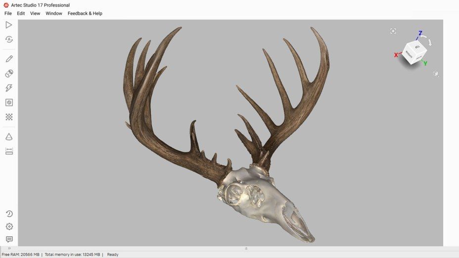 Artec Studio截屏:Leo扫描的鹿角和头骨的3D模型。图片来源My Engineering Ltd.