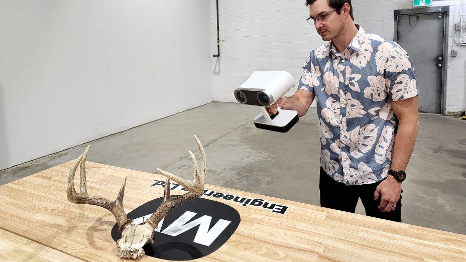 Artec 3D金牌认证技术员Derek Paulson,正在使用Artec Leo对鹿角进行扫描。图片来源My Engineering Ltd.