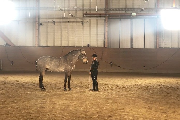 接下来,马会自由活动,包括摆动一下尾巴,也可能直接靠后腿站起来。这时,就需要和驯马师紧密合作。“我让驯马师尽量让马匹保持不动,”她强调,让马匹在设备面前获得安全感很重要。