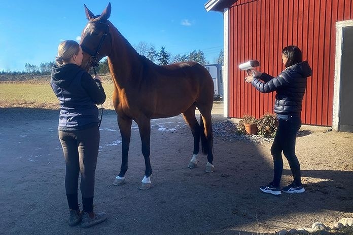 “马匹要先闻闻扫描仪,它们能感知一切,”Kjellmark 说道。“它们还对闪光灯有反应,不过使用Leo的话不成问题,效果非常好。”
