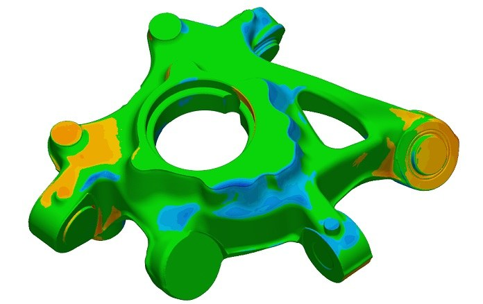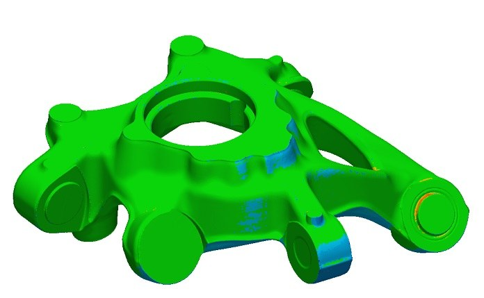 在转向节的铸造过程中,我们研究了适合模型和材料的收缩率。铸造厂建议使用2%的均匀缩放来生产准确的零件。为了研究3D扫描和精度缩放因子对成品精度的影响,我们按照建议的2%缩放因子制作了蜡模,并提供给铸造厂。