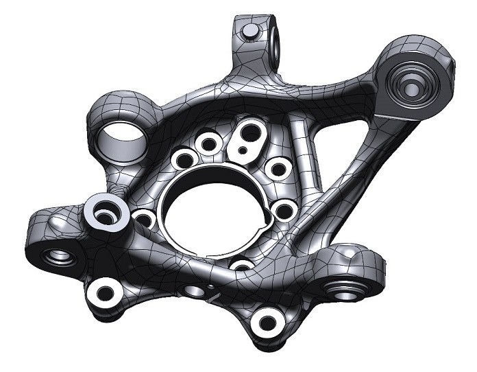 在该制造案例中,我们重复了客户的一项真实项目,但简化了部分细节。在本案例中,我们的客户需要研发一辆特别的轻量型自动驾驶汽车。为加快上市时间,选择了目前市面上许多汽车部件与系统,结合起来完成汽车原型。在这过程中,他们找到了一款特殊的转向节,对项目颇有用处,客户需要对其数字化,捕获设计,用于轻量材料的设计修改与生产。