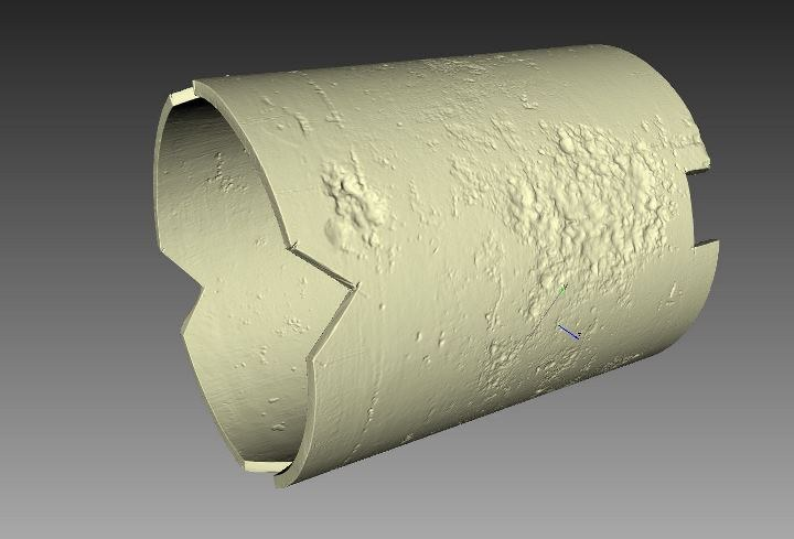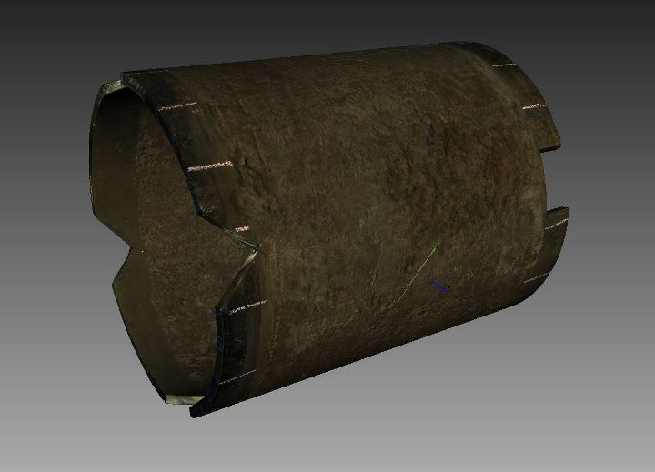 目标:对喷射清理的大直径铁管道所选部分进行3D扫描,制作精准3D模型,用于测定管道表面的厚度变化。