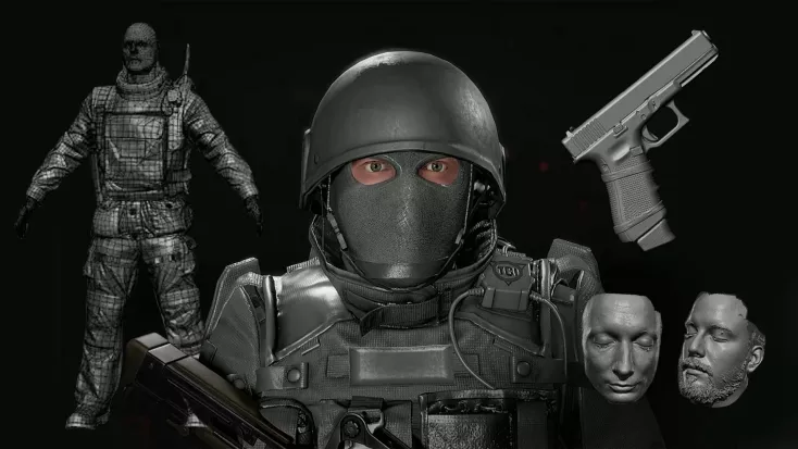 《第三次世界大战》:Artec Studio和Space Spider扫描完成的后期角色开发,Glock 17手枪由Artec Space Spider扫描,脸部由Artec Leo扫描