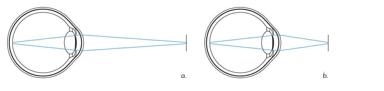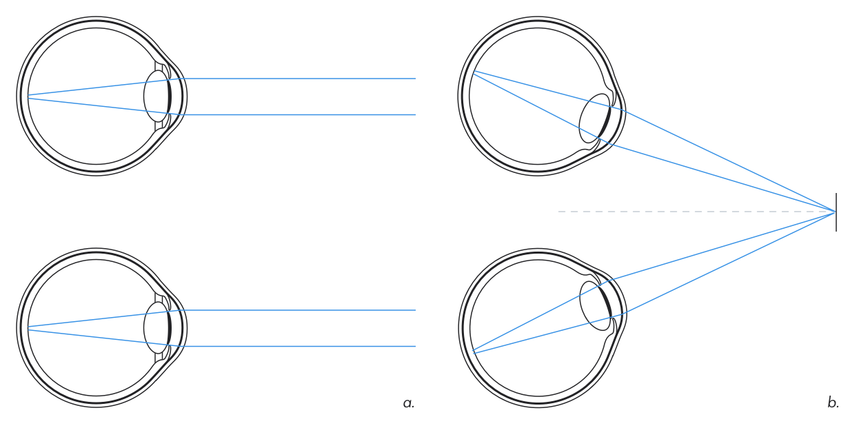 图2:眼部调节(聚焦):(a)远处物体 (b)近处物体